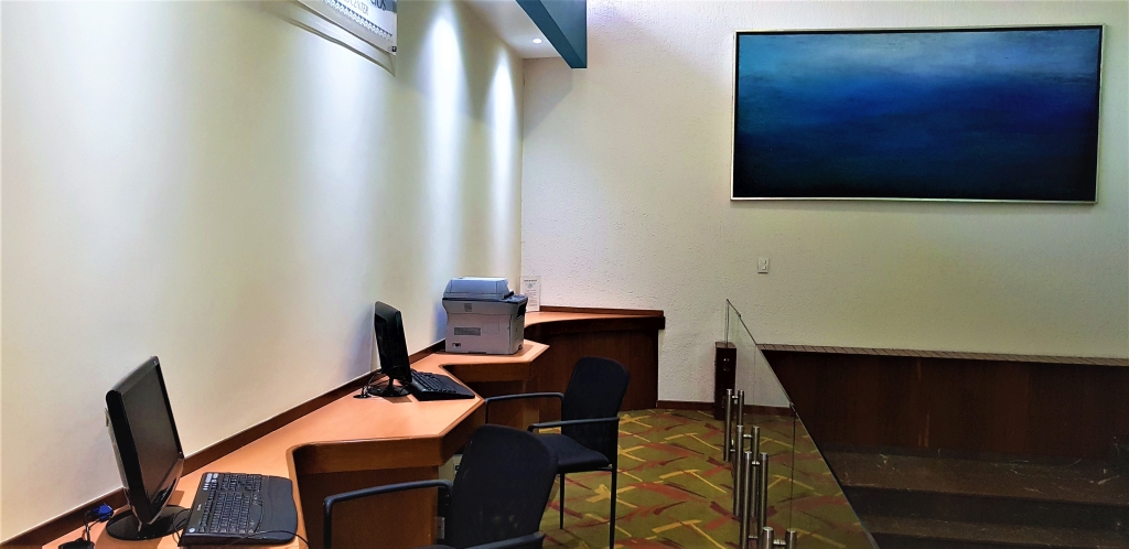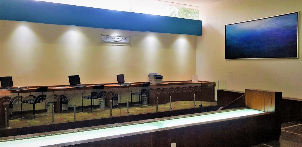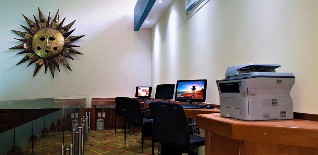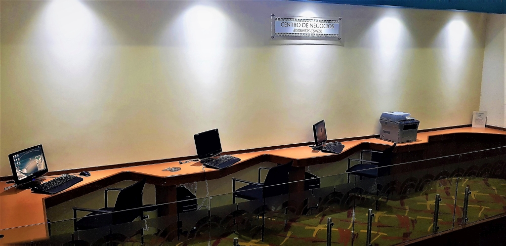 Localizado en el vestíbulo del Hotel, contamos con un espacio especialmente diseñado para el desarrollo de las actividades empresariales de nuestros huéspedes, equipado con computadoras conectadas a internet de alta velocidad y con el software y sistemas más actualizados que pueda llegar a requerir.
